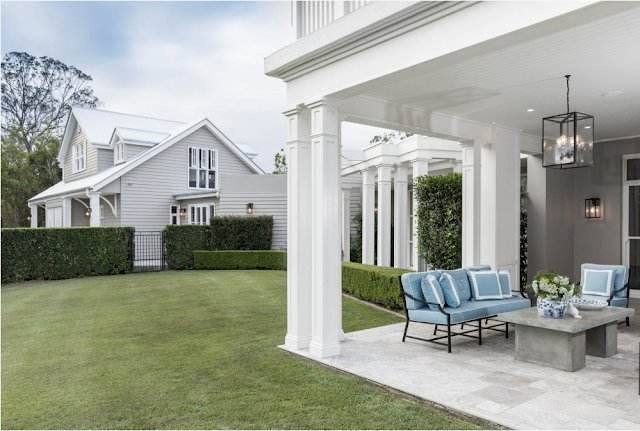 Our clients were as excited as we were and we were given the green light to start the process. So what is the process? Apart from engaging a builder, building plans & approvals etc... every single material for the home needs to be selected prior to commencement. The balustrade for example was complex, the trellised patios were needed to dress up the exterior, the millwork details, the external paint colours, the french travertine, lighting etc. all needed to be considered. The builder with his quality workmanship, planning and skills brings our vision to life!